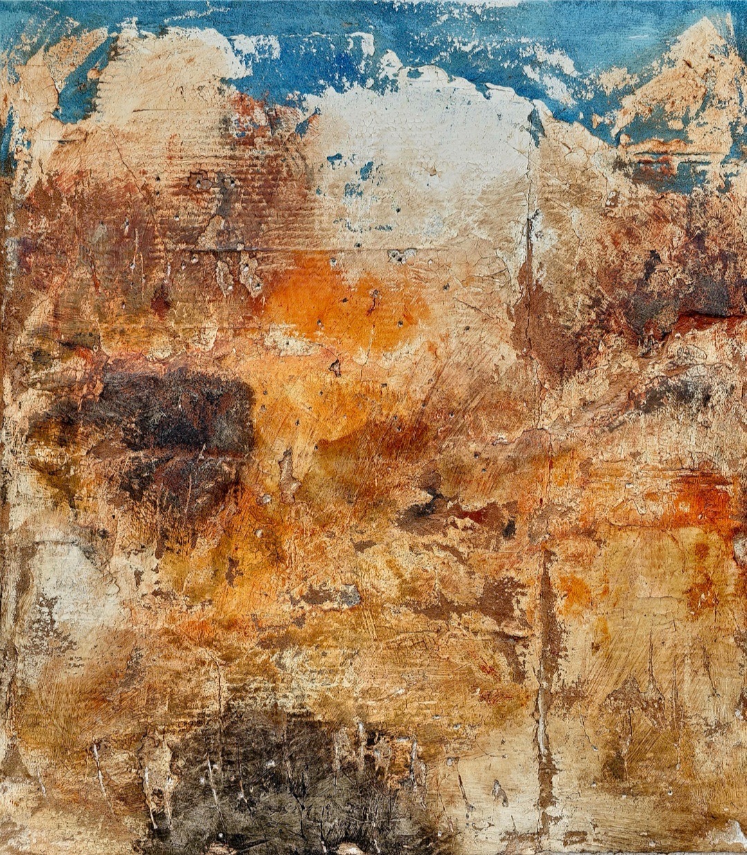 The abstract, large-format paintings by Thorsten Poersch are created with natural materials such as ash, sand, and earth pigments, resulting in textured surfaces that feel raw, timeless, and meditative. Each original artwork tells a story of depth, transience, and beauty, making it a striking statement piece in any luxury villa, modern penthouse, or exclusive interior design concept.